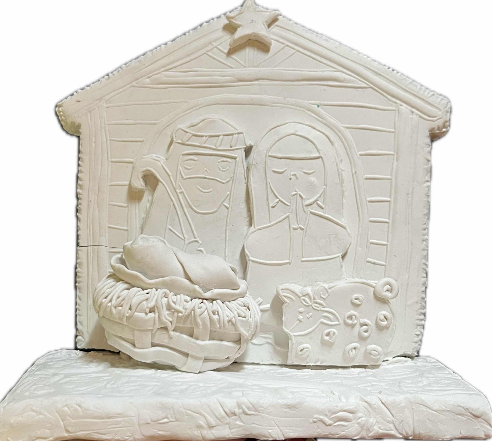 This is how far I’ve gone with my nativity project. The base separated from the main piece when I baked it so I am still figuring how to put it together! I don’t know if  putting clay will help!!!