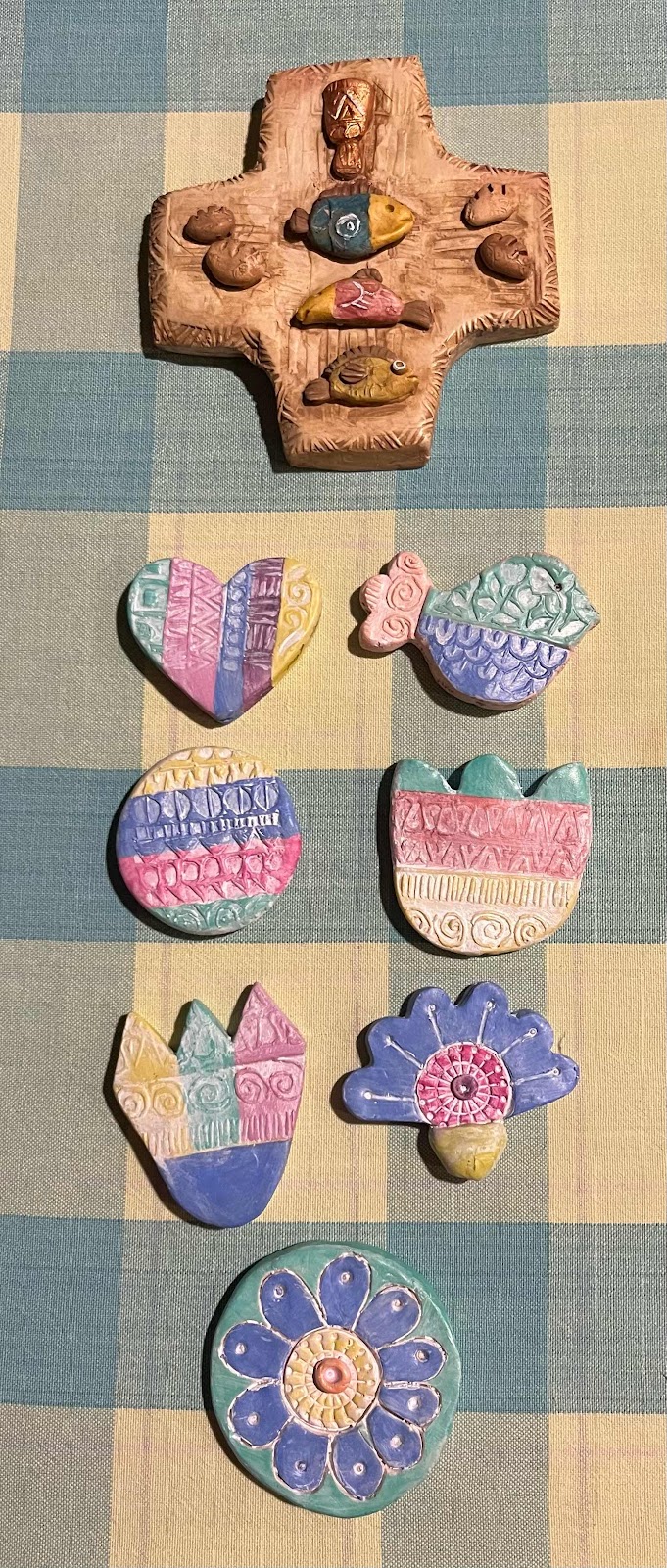 This is my latest project, a loaves and fishes cross, and plant sticks. I colored the samples for mass production.