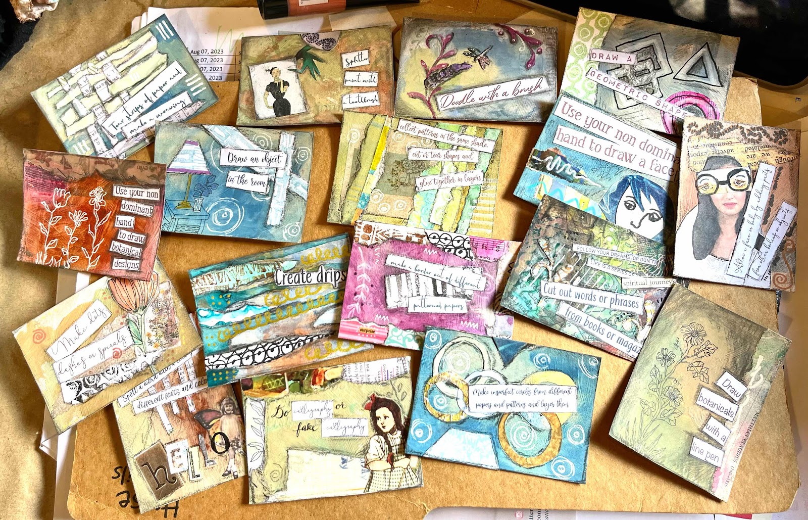 I decided to make ATC Art Prompts for a morning of collage art with some friends. Alas! It’s not going to push through because of a bad cough! 😷 So sad!