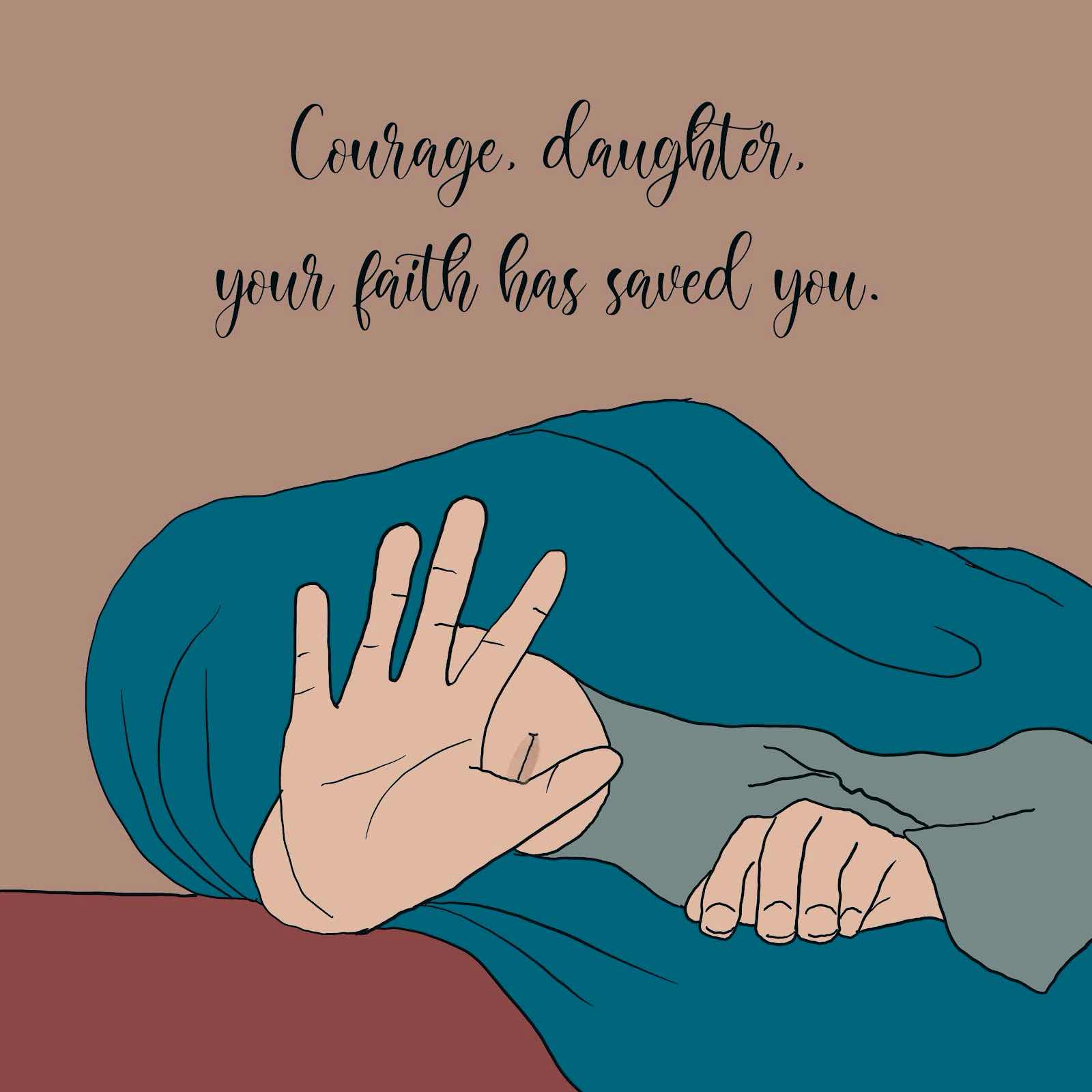 Jesus was always walking and I have no doubt that there were many more occasions that people tried to touch the tassels on His cloak. In the 9th chapter of Matthew, a woman who had been hemorrhaging for 12 years came up behind him. Although she was trying to be inconspicuous, Jesus turned around, saw her, and said, "Courage, daughter! Your faith has saved you." And she was healed.