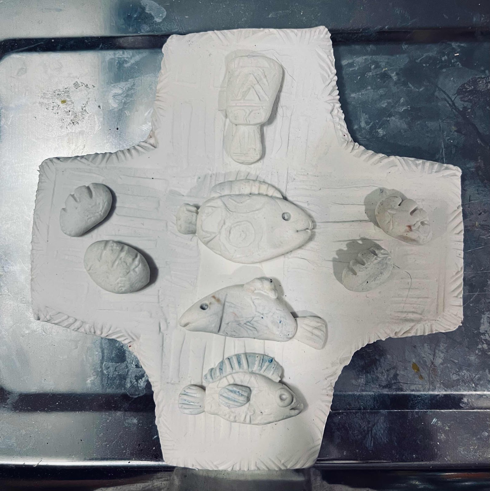 Here is my project for today, the Loaves and Fishes cross. I did not attach the bread and fishes as I am still auditioning where to place them.