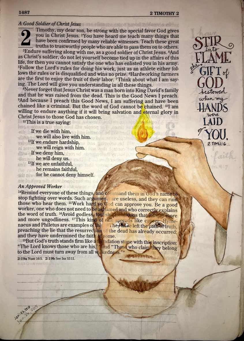 “Stir into flame the gift of God bestowed on you when I laid my hands on you." 2 Timothy 1:6