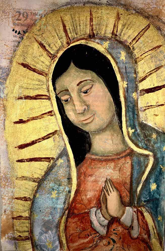 On December 9, 1531, Mary, the mother of Jesus, appeared to a 57-year old simple peasant man, an Aztec convert, who was on his way to mass. Mary asked Juan Diego to request Bishop Zumarraga that a shrine be built in her honor on the site where she appeared. When Juan presented this request to the Bishop, the Bishop naturally asked for a sign. After several encounters with Mary, Juan brought the Bishop what he asked for. When Juan opened his tilma, his peasant cloak, beautiful Castillan roses, foreign to Mexico, fell out, but more than that, the Bishop saw an extraordinary image of Our Lady on the tilma. The Bishop wept at the sight. That tilma still survives today and thousands go to see it in the Basilica of Our Lady of Guadalupe.