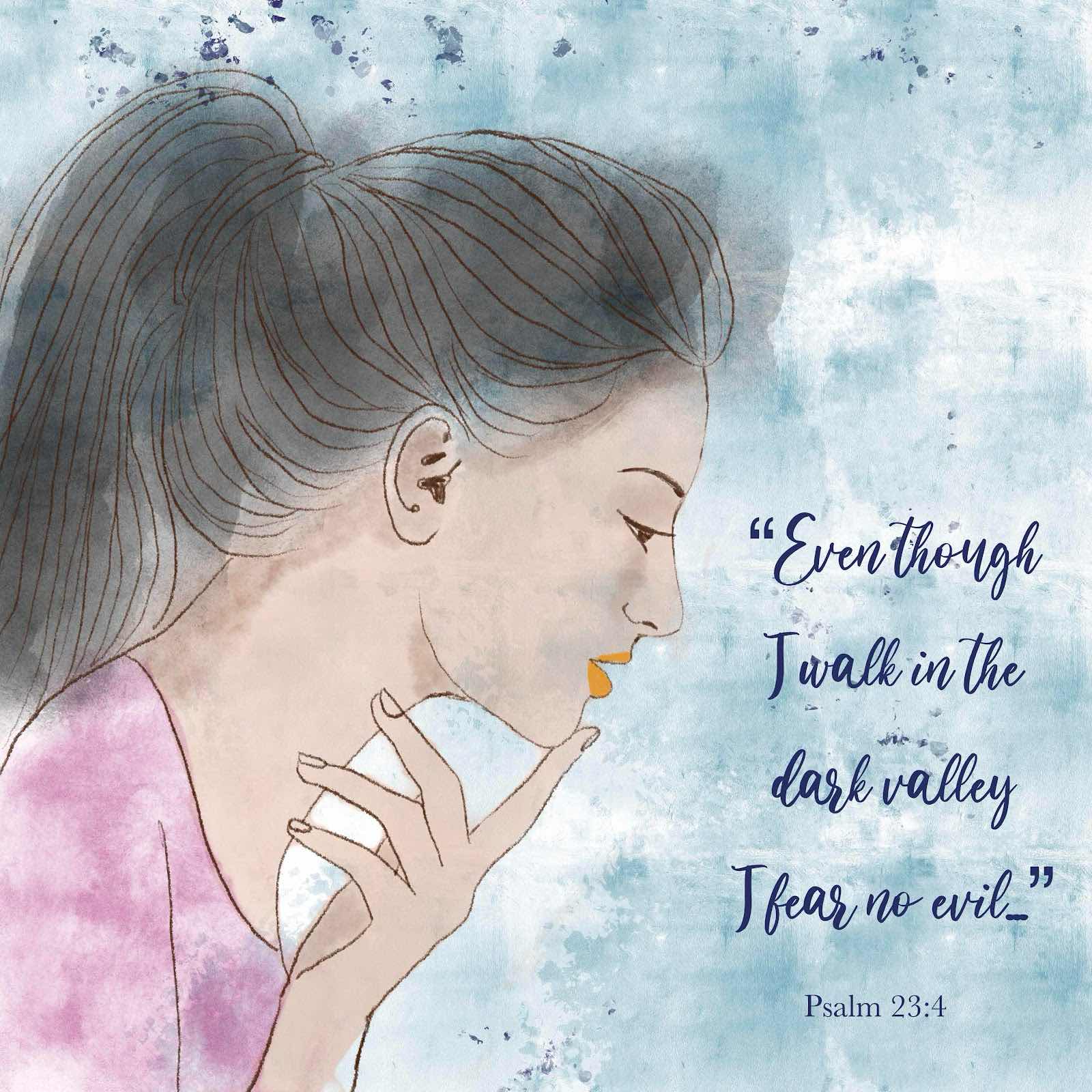 “Even though I walk in the dark valley I fear no evil; for you are at my side; With your rod and your staff that give me courage.” Psalm 23:4