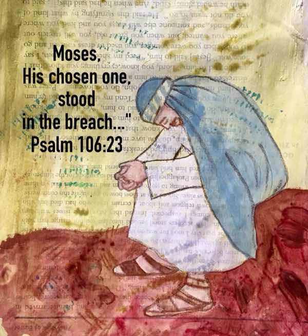 “Moses, His chosen one, withstood Him in the breach to turn back His destructive wrath.” Psalm 106:23